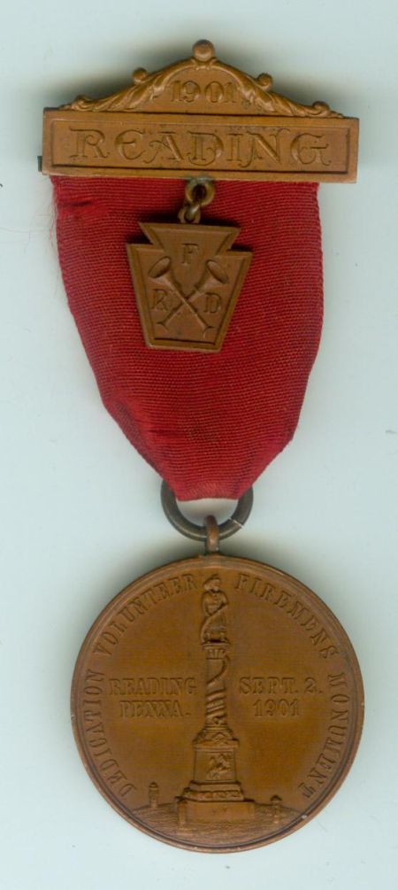 Medal to commemorate the dedication of the Volunteer Fireman's Monument in Reading, Pensylvania on September 2nd, 1901.