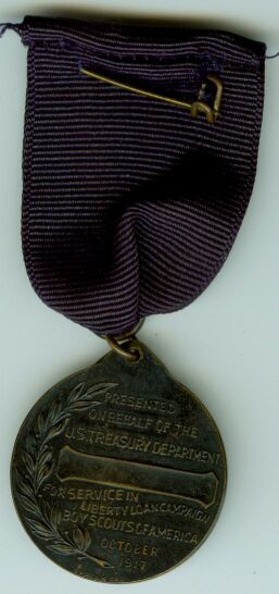 This medal was awarded to members of the Boy Scouts of America by the US Treasury, who sold ten or more Liberty Loan Bonds in one of the 5 campaigns during the First World War.