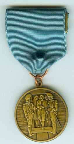 The Connecticut 2nd Foot Guard 200th Anniversary Medal was awarded to members of the Connecticut 2nd Foot Guard to commemorate their 200th anniversary in 1975.