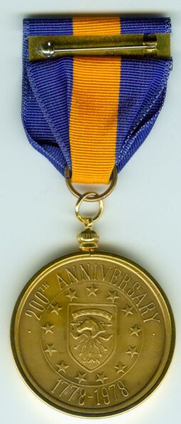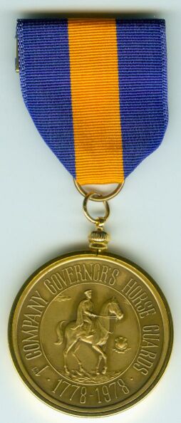 The Connecticut 1st Company, Governor's Horse Guards 200th Anniversary Medal was awarded to members of the Connecticut 1st Horde Guard to commemorate their 200th anniversary in 1978.