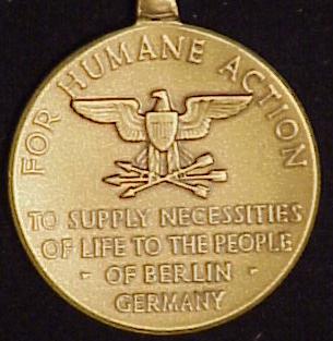 The Medal for Humane Action was awarded to members of the Armed Forces of the United States assigned to the Berlin Airlift for 120 or more days during the period of June 26, 1948 and September 30, 1949. This medal was also awarded to foreign armed forces and to U.S. and foreign civilians who were recommended for meritorious participation in the Berlin Airlift.